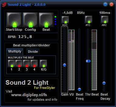 Freestyler is free DMX lighting control software used by many leading dj's, venues and lighting designers and supported by a vast network of users worldwide. S2L is the plugin you can use to let your lights trigger by sound.